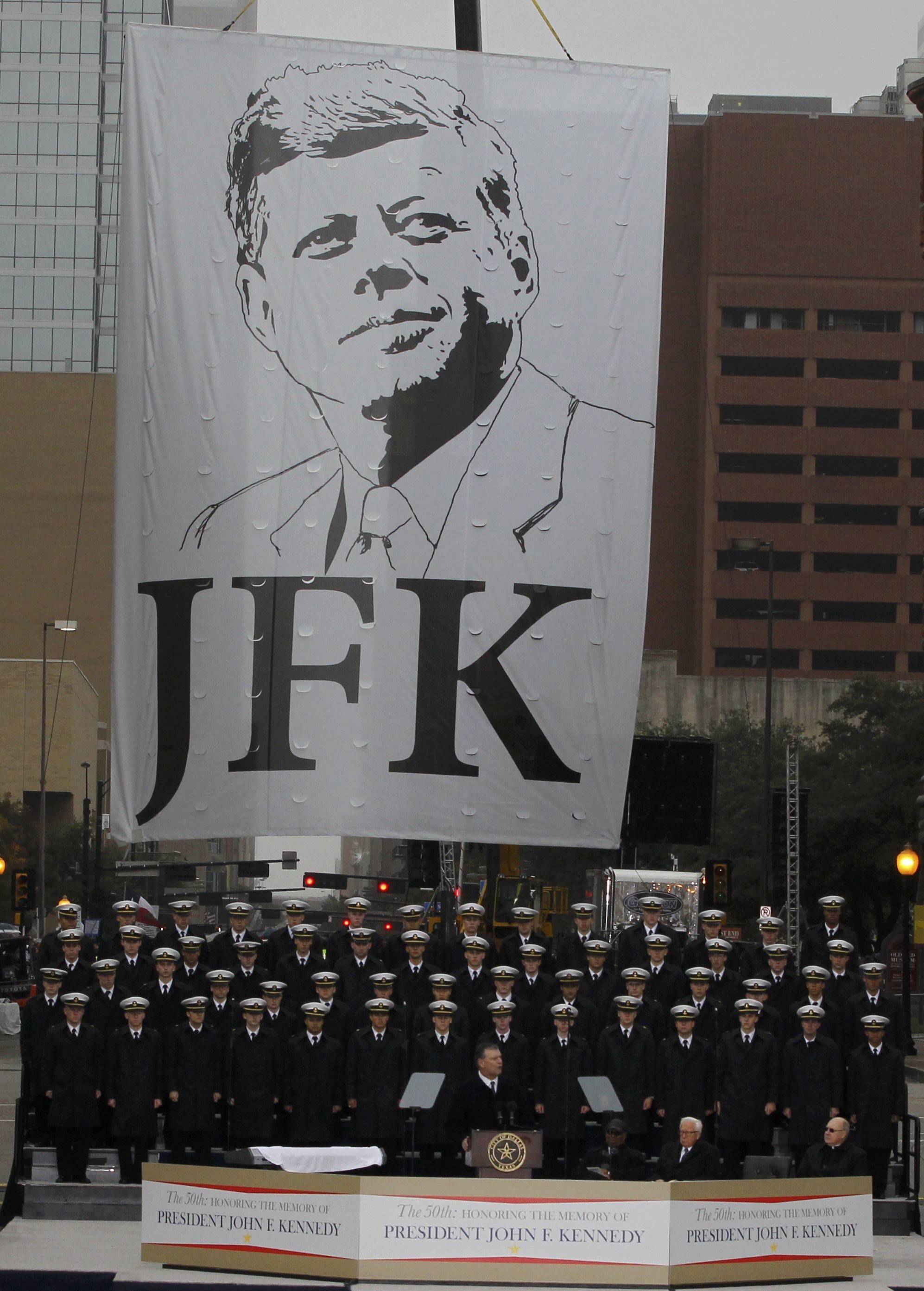 2013年11月22日,在美国达拉斯,美国海军军官学校男子合唱团参加肯尼迪遇刺50周年纪念活动。新华社/美联肯尼迪家族强烈反对 艺术演出接连取消